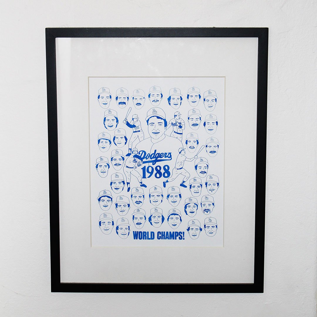 1 color Risograph print of the 1988 World Series Champions Los Angeles Dodgers